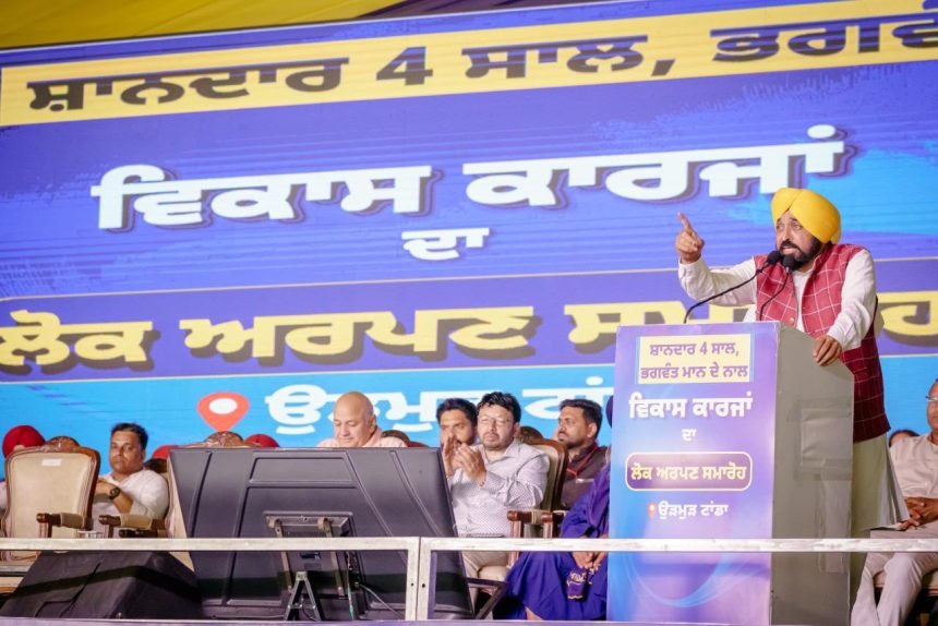 ਮੁੱਖ ਮੰਤਰੀ ਨੇ ਅਕਾਲੀ ਦਲ ਨੂੰ ਜਨਤਾ ਦੇ ਭਰੋਸੇ ਨੂੰ ਤੋੜਨ ਅਤੇ ਸ੍ਰੀ ਗੁਰੂ ਗ੍ਰੰਥ ਸਾਹਿਬ ਦਾ ਨਿਰਾਦਰ ਕਰਨ ਲਈ ਵੀ ਜ਼ਿੰਮੇਵਾਰ ਠਹਿਰਾਇਆ। ਉਨ੍ਹਾਂ ਅੱਜ ਦੀ ਇਸ ਪਹਿਲਕਦਮੀ ਨੂੰ ਵਿਕਾਸ ਵਿੱਚ ਵਾਧੇ ਅਤੇ ਸੂਬੇ ਦੀ ਸਿਆਸਤ ਲਈ ਨੈਤਿਕ ਮੁਲਾਂਕਣ ਵਜੋਂ ਦਰਸਾਇਆ। ਮੁੱਖ ਮੰਤਰੀ ਭਗਵੰਤ ਸਿੰਘ ਨੇ ਐਕਸ ਹੈਂਡਲ ‘ਤੇ ਲਿਖਿਆ: “ਅੱਜ ਮੈਂ ਹੁਸ਼ਿਆਰਪੁਰ ਜ਼ਿਲ੍ਹੇ ਦੇ ਟਾਂਡਾ ਵਿੱਚ 150 ਕਰੋੜ ਰੁਪਏ ਦੇ ਵੱਖ-ਵੱਖ ਵਿਕਾਸ ਪ੍ਰੋਜੈਕਟਾਂ ਦੇ ਉਦਘਾਟਨ ਸਬੰਧੀ ਕਰਵਾਏ ਗਏ ਸੂਬਾ ਪੱਧਰੀ ਸਮਾਗਮ ਵਿੱਚ ਹਿੱਸਾ ਲਿਆ। ਸਾਡੀ ਸਰਕਾਰ ਸੂਬੇ ਦੇ ਬੁਨਿਆਦੀ ਢਾਂਚੇ ਅਤੇ ਸਿਹਤ ਸਹੂਲਤਾਂ ਨੂੰ ਨਵੀਆਂ ਉਚਾਈਆਂ ‘ਤੇ ਲੈ ਕੇ ਜਾ ਰਹੀ ਹੈ।”
