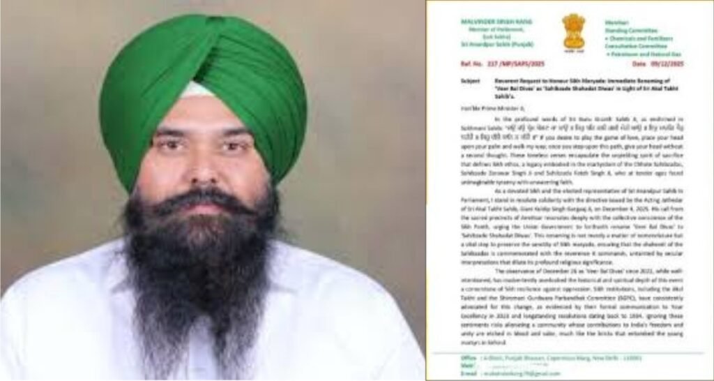 ਉਨ੍ਹਾਂ ਅੱਗੇ ਲਿਖਿਆ ਕਿ ਮੈਂ ਇਕ ਸਿੱਖ ਸ਼ਰਧਾਲੂ ਅਤੇ ਸੰਸਦ ਵਿਚ ਸ੍ਰੀ ਅਨੰਦਪੁਰ ਸਾਹਿਬ ਦੇ ਚੁਣੇ ਹੋਏ ਪ੍ਰਤੀਨਿਧੀ ਹੋਣ ਦੇ ਨਾਤੇ ਮੈਂ 4 ਦਸੰਬਰ 2025 ਨੂੰ ਸ੍ਰੀ ਅਕਾਲ ਤਖਤ ਸਾਹਿਬ ਦੇ ਕਾਰਜਕਾਰੀ ਜਥੇਦਾਰ ਗਿਆਨੀ ਕੁਲਦੀਪ ਸਿੰਘ ਗੜਗੱਜ ਵੱਲੋਂ ਜਾਰੀ ਕੀਤੇ ਗਏ ਨਿਰਦੇਸ਼ਾਂ ਦੇ ਨਾਲ ਪੂਰੀ ਤਰ੍ਹਾਂ ਖੜ੍ਹਾ ਹਾਂ। ਅੰਮ੍ਰਿਤਸਰ ਦੀ ਪਵਿੱਤਰ ਧਰਤੀ ਤੋਂ ਉਨ੍ਹਾਂ ਦੀ ਅਪੀਲ ਸਿੱਖ ਪੰਥ ਦੀ ਸਮੂਹਿਕ ਅੰਤਰਆਤਮਾ ਦੀ ਗਹਿਰਾਈ ਨਾਲ ਜੁੜੀ ਹੋਈ ਹੈ। ਜਿਸ ’ਚ ਕੇਂਦਰ ਸਰਕਾਰ ਤੋਂ ‘ਵੀਰ ਬਾਲ ਦਿਵਸ’ ਦਾ ਨਾਮ ਬਦਲ ਕੇ ‘ਸਾਹਿਬਜ਼ਾਦੇ ਸ਼ਹਾਦਤ ਦਿਵਸ’ ਕਰਨ ਦੀ ਅਪੀਲ ਕੀਤੀ ਗਈ ਹੈ। ਇਹ ਨਾਮ ਬਦਲਣਾ ਸਿਰਫ਼ ਨਾਮ ਰੱਖਣ ਦੀ ਗੱਲ ਨਹੀਂ ਹੈ ਬਲਿਕ ਸਿੱਖ ਮਰਿਆਦਾ ਦੀ ਪਵਿੱਤਰਾ ਨੂੰ ਬਣਾਈ ਰੱਖਣ ਦੇ ਲਈ ਜ਼ਰੂਰੀ ਕਦਮ ਹੈ। ਤਾਂ ਜੋ ਇਹ ਪੱਕਾ ਹੋ ਸਕੇ ਕਿ ਸਾਹਿਬਜ਼ਾਦਿਆਂ ਦੀ ਸ਼ਹੀਦੀ ਨੂੰ ਉਸੇ ਸਨਮਾਨ ਦੇ ਨਾਲ ਮਨਾਇਆ ਜਾਵੇ ਜੋ ਉਨ੍ਹਾਂ ਨੂੰ ਮਿਲਦਾ ਹੈ। ਸਿਆਸੀ ਹਿਤਾਂ ਦੇ ਮੱਦੇਨਜ਼ਰ ਸ਼ਹਾਦਤ ਦੀ ਅਹਿਮੀਅਤ ਨੂੰ ਕਮਜ਼ੋਰ ਨਾ ਕੀਤਾ ਜਾਵੇ।